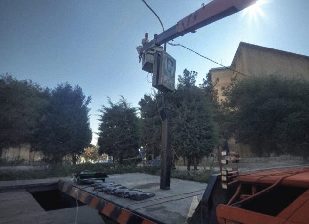 نوسازی روشنایی بلوار استقلال مهستان با تعویض سرچراغ‌های قدیمی
