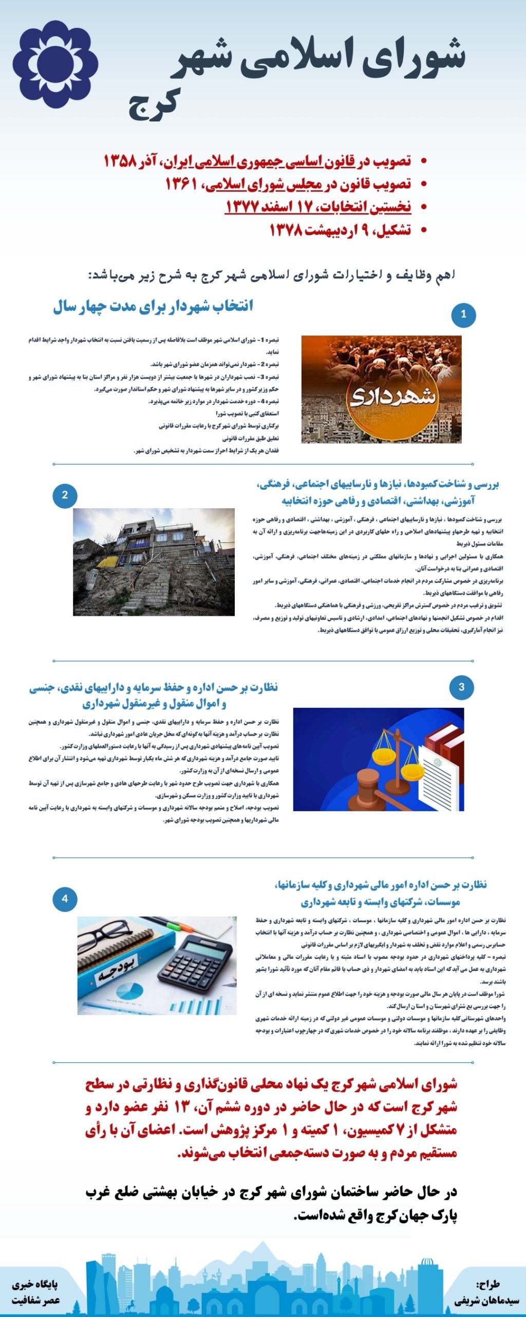 به گزارش پایگاه خبری عصر شفافیت، سید ماهان شریفی اهم وظایف و اختیارات شورای اسلامی شهر کرج را در قالب اینفوگرافی درآورده است.